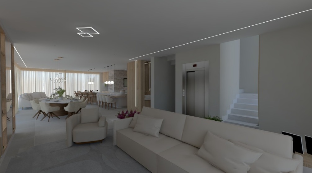 Distribuída em três pavimentos, a residência possui integração total entre os ambientes, garantindo amplitude, luminosidade natural e fluidez nos espaços. O living principal, com mais de 60m², é o destaque. Perfeito para momentos de convivência e recepção com muito charme.